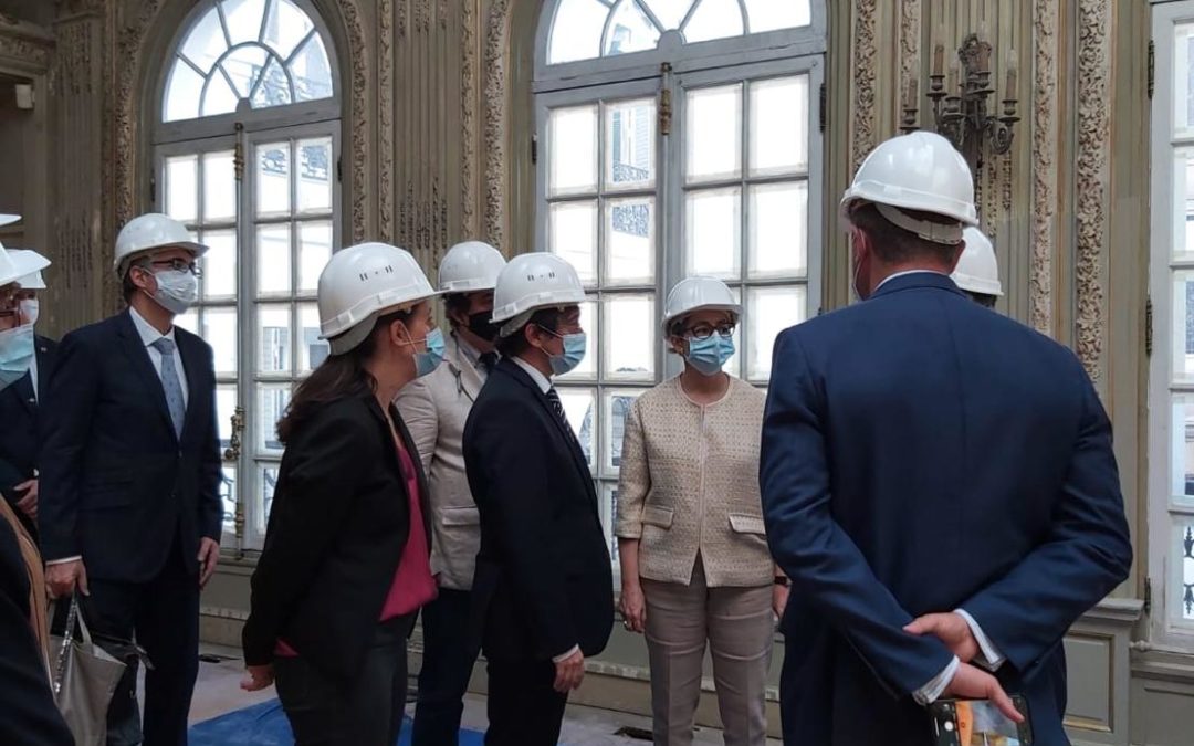 The Spanish Minister of Foreign Affairs, Arancha Gonzalez Laya, this morning visiting the rehabilitation works of the Octavio Paz Library of the Cervantes Institute, avenue Marceau in Paris. Four more months of work and ready for its Inauguration in 2021! MCBAD...